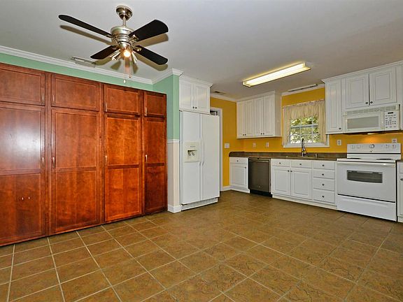 - KITCHEN DESC: Eat In Kitchen, Pantry, Crown Mold, Smooth Ceiling, Ceiling Fan, Tile, Laminate Floor