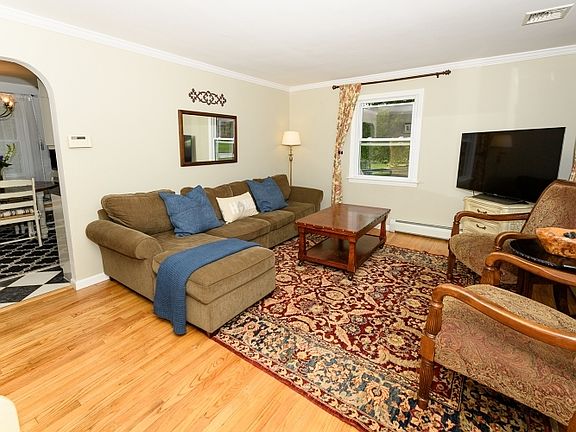 CUTE AS A BUTTON! Such a great home for starting out or downsizing. Space galore in this 4 Bedroom, 2 F/Bath Col Cape, located next to a park & close to the town pool. (Baseball & Sleigh riding)Enter into a bright Living Room with hardwood floors, continue to the spacious Eat in Kitchen with the sweet exit leading to the level yard for easy barbecuing. This floor continues with a Full (updated) Bath & 2 Bedrooms both with hardwood floors! Upstairs to the sizable Master Bedroom, another updated Full Bath & 1 more spacious Bedroom. The unfinished basement has a wood burning stove & is waiting for your touches...and it also has stairs leading outside. Central Air conditioning, Baseboard Hot Water Gas heat, great schools, quiet street, low taxes... A HOME RUN!!!