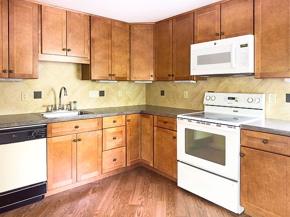Welcome to Ashland's Ledgemere Country, a highly desirable community of townhomes situated in a serene wooded environment and convenient location. This "Star" style townhome is sought after for it's unique layout - a two car side-by-side garage and it's own driveway with additional parking, a feature only available to this style. The second floor has two bedroom suites each with its own full bathroom. Nice oversized updated kitchen with dine-in area is packed with maple cabinets and a marble food prep counter. The living room with a brick gas fireplace overlooks an oversized deck to enjoy outdoor living this summer. There is also a half bath on the first floor. This home is nicely situated in the community and is just minutes from shopping, restaurants, schools, and major routes. Don't miss seeing this home as this style does not come on the market often.