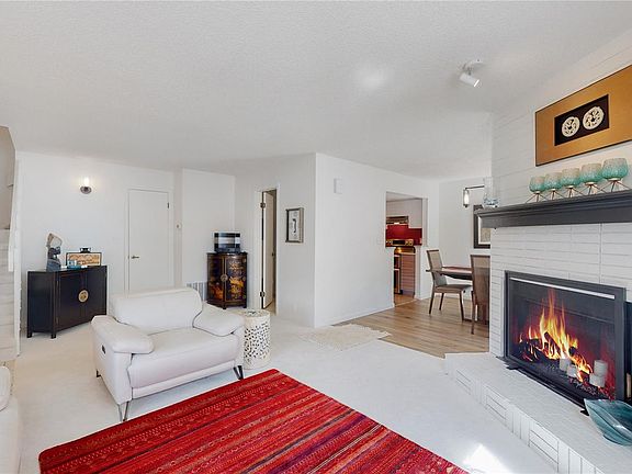 Exceptional townhome-style condo across from the famous Castle ROCK! With upgrades and updates galore, your only need is to settle in and enjoy quiet living nestled in the heart of town. Tasteful, modern touches are reflected in the updated kitchen with gorgeous counters and ruby backsplash, sleek push-latch cabinetry featuring ambient, multi-color option lighting. Wood kitchen flooring runs underfoot and the appliances have been updated to beautiful stainless steel models. The living room has a wood-burning fireplace with white-washed brick surround, 1/2 bath for company and lots of natural light. The elegant white carpet and laminate flooring on the main level are new! Upstairs are a very spacious owner's suite w/ walk-in closet, a secondary bedroom and an updated bathroom w/ large shower. The basement is finished with an additional family room and storage and this area could easily be used as an as-is bedroom or could be divided off with an easy wall addition. There's also rough-in plumbing to complete this home as a 3B/3b at pennies on the dollar. Enjoy the new, huge Trex deck out in the private back yard, which gives a direct, unhindered sightline of the stunning, iconic Castle Rock providing you with perfect views of the Rock and its annual popular Starlighting event! Attached 1-car garage and separate reserved space (#73)! Simply hop across the street to wander and hike Rock Park! Conveniently located very close to the improved old downtown or a quick ride up Front St to restaurants, the Outlets or your I-25 commute. Showings begin Friday, September 23rd at noon!! Check out http://prop.tours/obu for the 3D Virtual Tour, aerial footage and extra photos.
