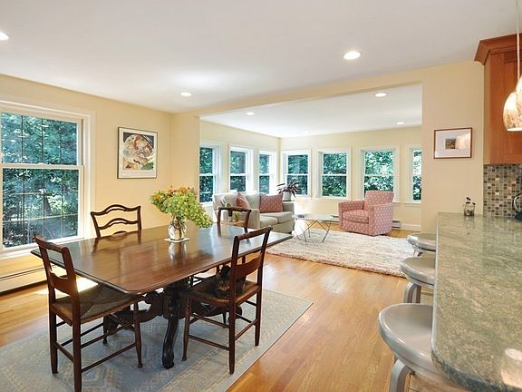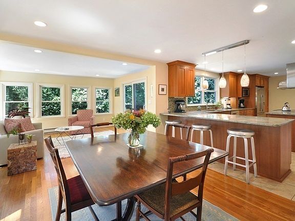 Rare find on double cul-de-sac West Concord neighborhood. Fully renovated, open floor plan with new four-season sunroom and tree-top views of abutting town land. Stunning, updated chef's kitchen features Brazilian granite counters, custom cabinets, cooking island and serving peninsula. The latest generation stainless steel appliances, including professional-grade induction stove with vent hood. The huge main bedroom includes a wood burning fireplace, walk-in closets, and updated bathroom. Three ample bedrooms feature hardwood floors, large closets, and loads of sunlight along with a spacious full bath. Beautiful living room and family room with fireplace provide many individual spaces for family activities. An open basement provides more flexible play area, with a two-car garage and delightful yard. Kid-friendly neighborhood with a private playground and sidewalk to West Concord Village. Character and charm throughout.