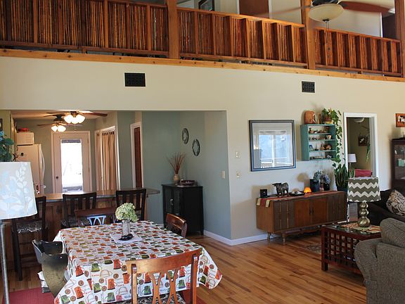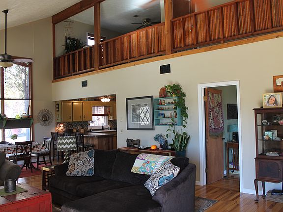Rustic mountain charmer with end of the road privacy with lake & mountain views!! This 2 bedroom ( loft area could easily be a 3rd bedroom) 2.5 bath home offers many updates! This home is very inviting with open concept, vaulted ceilings, and plenty of windows for natural light. Elegant finishes such as hardwood floors, stone fireplace, tile floors in bath and tile showers.The finishing touches on the master bath include furniture-grade vanity, tile shower & jetted tub wrapped in barn wood to relax in. Open kitchen features new appliances, a tiled back-splash, breakfast bar & rustic elegant mountain charm. A cozy covered patio area adjacent to the level yard to relax and unwind from the day. Would be a great place for a firepit. Enjoy the beauty of nature, water, and mountain surroundings on this private wooded property. Single level living and close to town!