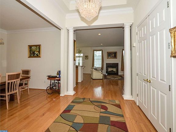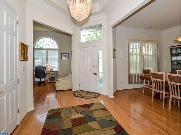 Beautiful Brick Front Single home in the 55 plus community of Regency At Northampton. Enter this home into the foyer entrance which includes hardwood floors throughout the living room, dining room, great room, kitchen and hall. The open and airy floor plan with large windows and soaring ceilings allows lots of natural light. Also includes accent pillars opens to both the great room and kitchen. This wonderful open floor plan is prefect for entertaining rain or shine. The kitchen features granite counter tops, breakfast bar, 42' upgraded cabinetry, gas cooking and breakfast area with sliders leading to an oversized covered patio. The kitchen is open to the great room and includes a Gas fireplace flanked by windows, recessed lighting and crown molding. The master bedroom suite features walk in closet and luxurious master bath with jetted tub and stall shower. There is a second bedroom, hall bath and large laundry room. The two car attached garage has attic storage with pull down stairs. This home is located on a quiet street and close to shopping and major commuting routes.