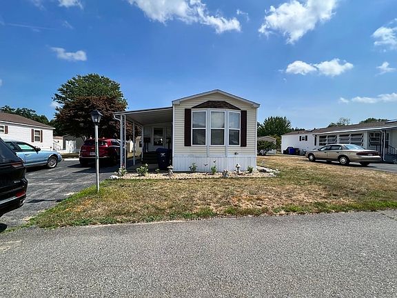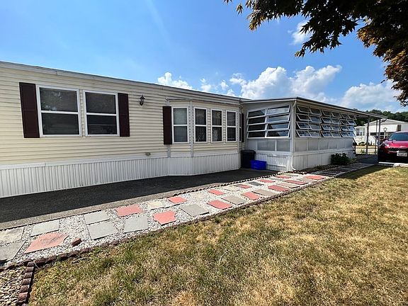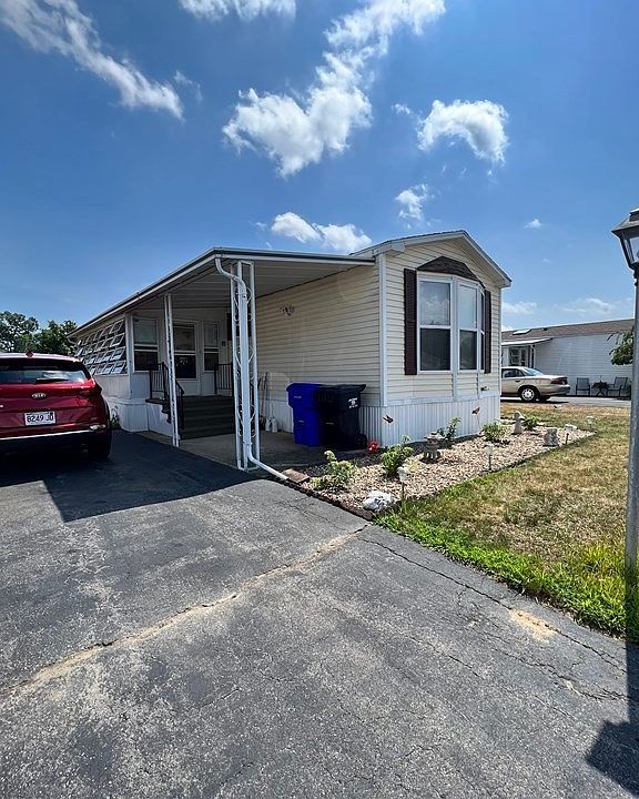 Well Maintained Mobile in Rocky Knoll Estates 55+ Community. Nothing to do but move in! Newer vinyl flooring throughout the kitchen, bathrooms, bedrooms, hallway, and laundry room. Hot water heater has been replaced within the last 5 years. New cap on the roof. Both bedrooms have TWO closets. Large open living and dining room. Enclosed 3 seasons room. This will go fast!