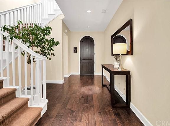 Welcome to the Village of Woodbury. This Sonoma home built by TRI Pointe Homes offers 3 bedrooms, 2 full baths, a 1/2 bath for guests, a great room and a California room right outside of the dining area. As soon as you enter the home, you are welcomed by a magnificent entry that extends all the way from your front door to the backyard creating a feeling of exceptional spaciousness. This home also offers a beautiful expansive open kitchen that encourages interaction and great entertaining. The kitchen also has kitchen-aid appliances in stainless steel, upgraded cabinets in white thermafoil, granite counters-tops, large island and a walk in pantry. As you walk up the elegant wood stair railing, you'll be greeted by the spacious master suite and master bath with dual sinks and a sunken bathtub. The expansive walk-in closet conveniently next to the master bath is big enough to please two persons. The huge laundry room has a sink, plenty of cabinets and shelf space for lots of storage and its conveniently located upstairs next to all the bedrooms. The award winning village offers 16 neighborhood parks, 7 swimming pools, and it is centered around a 30-acre gathering space known as The Commons. Miles of public trails throughout Woodbury connect to miles of wildlands via the Jeffrey Open Space Trail and the Venta Spur Trail. The Irvine School district also has Highly Rated Schools. Come live in luxury at Woodbury!
