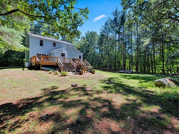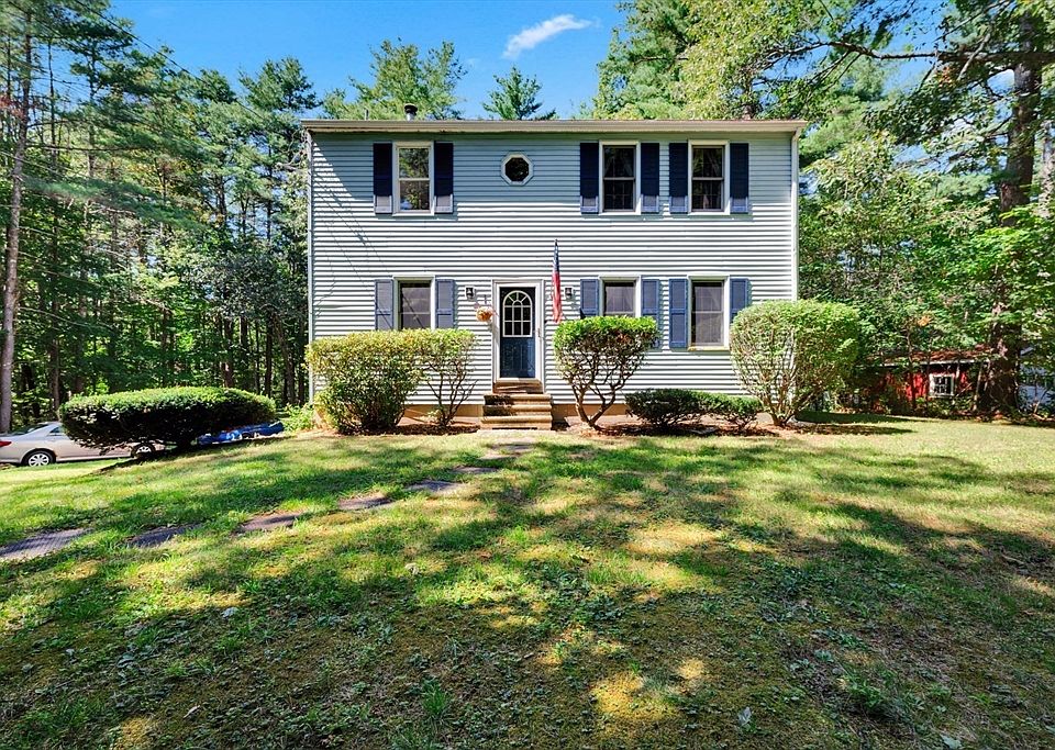 Welcome to this Beautiful Colonial nestled on a charming country road on a private wooded half acre lot. This home boast 4 generous sized bedrooms with nice closet space & 1.5 baths. An amazing open floor plan on the 1st floor with gleaming knotty pine floors. Kitchen with skylights and an island opens to the family room with pellet stove. There is a dining room that opens to the deck and a more formal living room area. There is also a 1/5 bath on the 1st floor. Master bedroom has an entrance to the full bath upstairs. Beautiful natural woodwork and doors throughout. A partially finished basement offers more livable space, a toy room, office, man town, you decide! There is propane for gas cooking. This home has plenty of living space and will not disappoint. Location is ideal with close access to Rte 20 and Mass Pike.