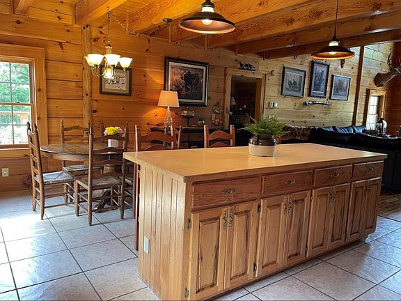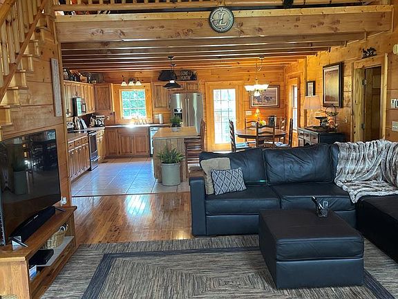 Beautiful Log Home with 3 bedrooms and 2 baths on main floor and an open floor plan. 2 Bonus Rooms/BR in basement! Potential mother-in-law suite. Relax with your coffee from the rear deck while enjoying the wildlife on this 14 + acres with creek bordering property. Great for hunting or just enjoying the outdoors. Main Family room featuring Cathedral ceilings to maximize more natural Lighting.