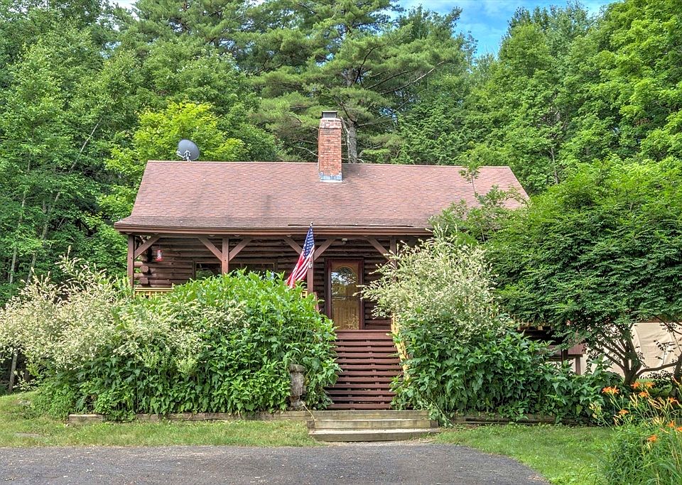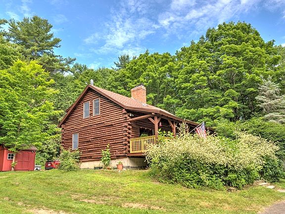 Pastoral setting on 5 acres wrapped in solitude and peace at this unique retreat less than 30 minutes from Northampton. A newly-built driveway leads to a magical log cabin w/ hand-hewn logs, pretty stone fireplace, great wood flrs, and a deep front porch for quiet evenings. Sweet kitchen has meal prep space for the serious home cook. Authentic post-and-beam custom-built wood-fired Finnish sauna w/ seating area & storage loft is the respite to peace & good health. 2 bedrooms upstairs flank a full bath, and potential 3rd bdrm on 1st floor adjacent to 1/2 bath & laundry. New septic tank installed prior to closing. Spacious basement w/ loads of storage. Excellent newer shed with elec panel & lights. Impressive wood heating unit can be coupled w/ oil heat (3 heat zones; hot water heating wood or oil). Mature perennials, flowering trees, stone walls, firepit. One-of-a-kind property loved for 19 years. Sophistication meets bucolic charm. High-speed fiber too.