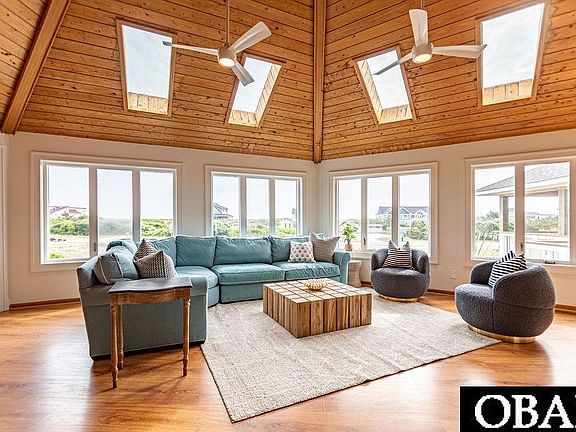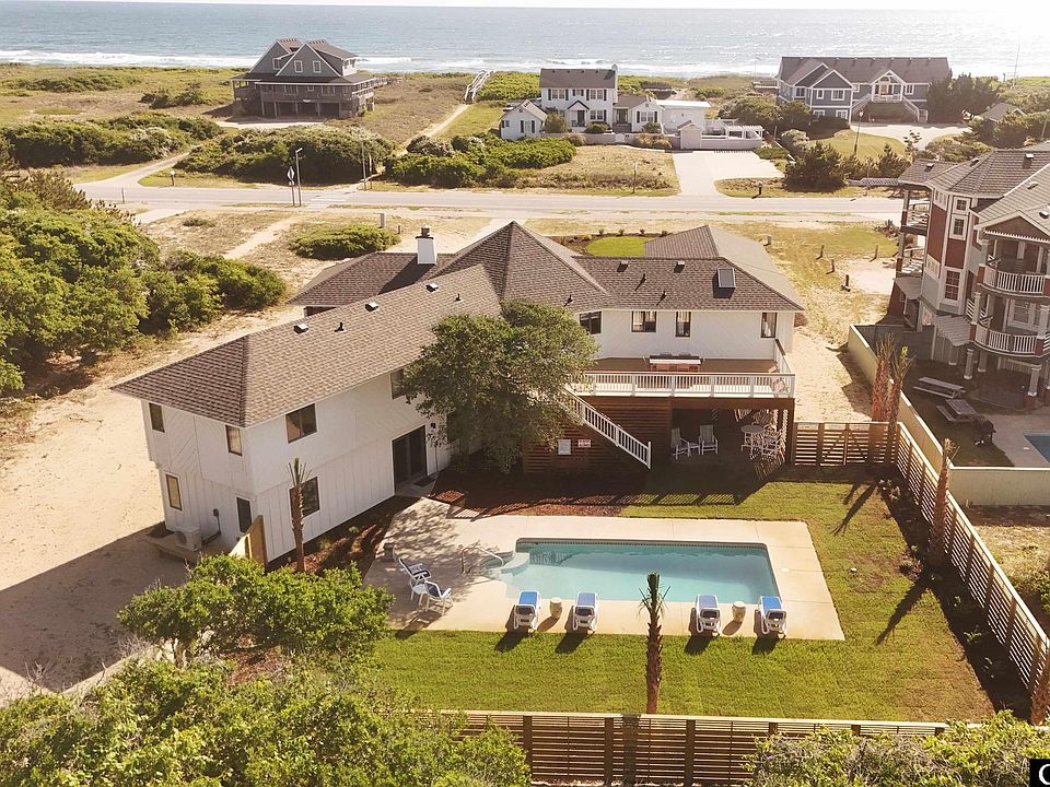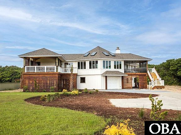 This beautifully renovated 4-bedroom, 4-bathroom semi-oceanfront home in Southern Shores is a rare find—fully turn-key with thoughtful upgrades inside and out. Just one lot from the ocean, enjoy the sound of waves and salty breezes from your covered front deck or screened porch, complete with tongue-and-groove decking and new screens. A spacious back deck with stained handrails offers even more room to relax or entertain outdoors. Step inside to discover a thoughtfully reimagined interior. The lower level was taken down to the studs and rebuilt with stained concrete floors, all-new solid wood interior doors, recessed lighting, and a beautifully tiled walk-in shower. Upstairs, the home features new HVAC, updated electrical, fresh carpet, and stylish new furnishings. The kitchen opens seamlessly into the upper living area, creating a natural flow for entertaining or easy everyday living. With two spacious living rooms—one on each level—and four generously sized bedrooms, there’s room for everyone to spread out. Exterior improvements include 50-year asphalt shingles, board and batten siding, Andersen windows, a full-yard irrigation system, a new fence, and lush landscaping with nine mature palm trees. A brand-new septic tank and drain field provide peace of mind. All bedrooms are outfitted with brand-new beds and TVs, making this property truly move-in ready. Set on over half an acre, the lot offers incredible flexibility—whether you dream of adding a guest house, a pickleball court, or simply enjoying the extra privacy and space. Whether you're searching for a second home, primary residence, or a strong rental opportunity, this one delivers on every level.