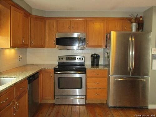 Spacious 4 Bedroom Raised Ranch with large master bedroom and living room addition. Home features rustic wood floors, updated kitchen with granite counters, tile backsplash and stainless appliances, 2-car attached garage, fireplaced family room in lower level, 3 baths, deck overlooking big back yard. Fresh interior paint and new carpet. No pets, no smoking. Subject to credit and background check. Close to town, easy access to I-84.