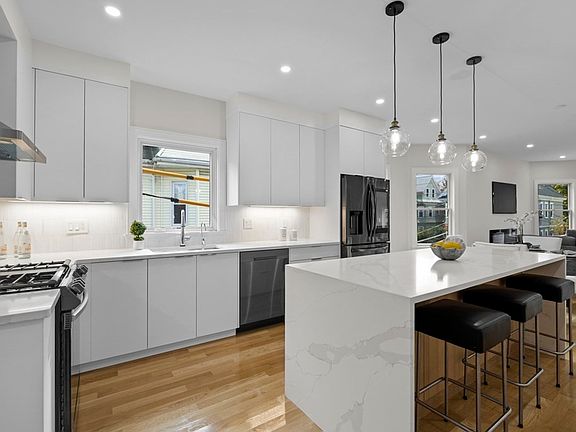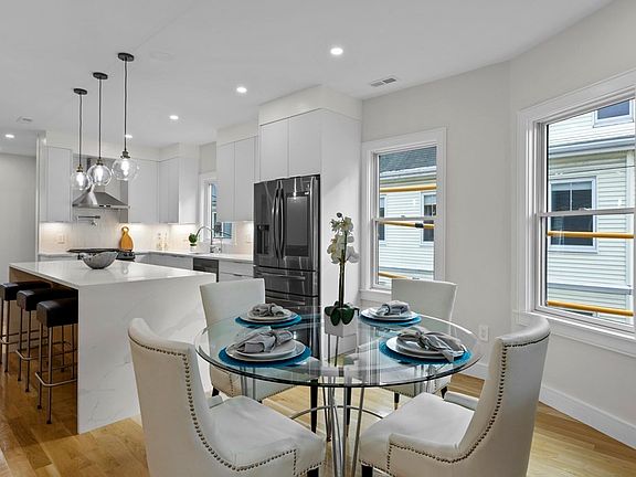 Luxurious & completely gut renovated 4 bed, 3 bath duplex penthouse condo in the heart of Davis Square on the beautiful tree-lined Orchard St in Cambridge. This bright & open floor plan home, w/ high ceilings & oak floors throughout, is flooded w/ natural light. Stunning kitchen w/ custom cabinets, quartz counters, waterfall island, Samsung Black stainless steel appliances w/ Family Hub Display, and 5 burner gas stove w/ griddle, vent hood & pot filler. Open dining room, livingroom w/ gas fireplace, sunny sitting room w/ picture windows, as well as 2 bedrooms & 2 full baths give you space and flexibility to live. Spacious top floor main bedroom suite is your private oasis w/ walk-in closet, window seat & spa-like ensuite bath w/ double vanity & rain shower. 4th bedroom for nursery or office, as well as laundry offer convenience. Radiant heat in bathrooms keeps you cozy while built-in alarm system gives peace of mind. Shared fenced front yard & private rear patio. Unbeatable location!