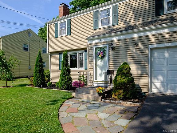 Come to your classic West Hartford Colonial! In this one there is nothing to do! Fabulous new white eat in kitchen with island, black granite, slide in 5 burner gas stove, all SS appliances and a big pantry. Your baths are updated as well! Large living room with fireplace, picture window and built ins opens to the formal dining room with corner cabinet and chair rail. From here you can access the huge patio and nice flat lot as well as from the kitchen. All four bed rooms are upstairs and there are hardwood floors throughout. The basement is partially finished and can be a playroom, office or workout space. The central air will keep you comfortable, and most systems have been recently updated. Beautiful deep back yard is ideal for entertaining, relaxing and playing. There is a pretty shed to store tools and outdoor furniture. Wonderful walkable (sidewalks) neighborhood in the Webster Hill District. Come and see this outstanding home.