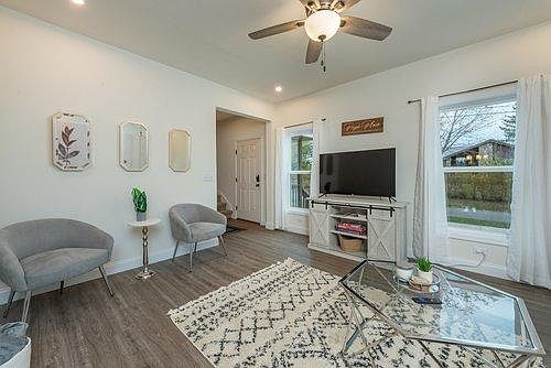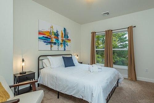 Fully furnished home with large driveway, deck, and backyard! Can be rented unfurnished for leases 12 months or longer. The home has 2 ensuite bedrooms equipped with their own closets, bathrooms, and TVs. Downstairs you will find the sleek and comfortable living room, fully equipped kitchen, laundry room, and half bath. This house is part of a side-by-side duplex. Utilities are not included. No Smoking allowed. Month to month or longer-term rentals allowed.