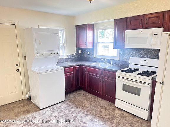 The long driveway offers parking for 2 cars. The yard has a Shed and backyard Patio with room for a vegetable and flower garden. Free pre-K located in town. Nearby Beach. Convenient to GSP, Rt 36, Rt 35, NY Ferries, Bus, and Train to NYC.