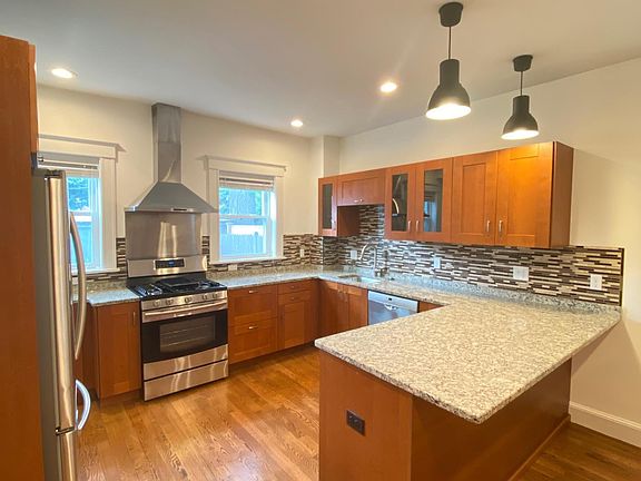Newly renovated first floor & garden level 3.5 bed/3 bath apartment in a two-dECKER house close to Porter Square. This lovely unit features: - Gleaming hardwood floors, high ceilings, gas heating, central a/c - New windows - Modern kitchen with s/s appliances, granite countertops, dishwasher, Island - Three spacious bedrooms with closets, three full bath, living room, study - In-unit laundry - Shared backyard - Garage parking for rent for $100/month