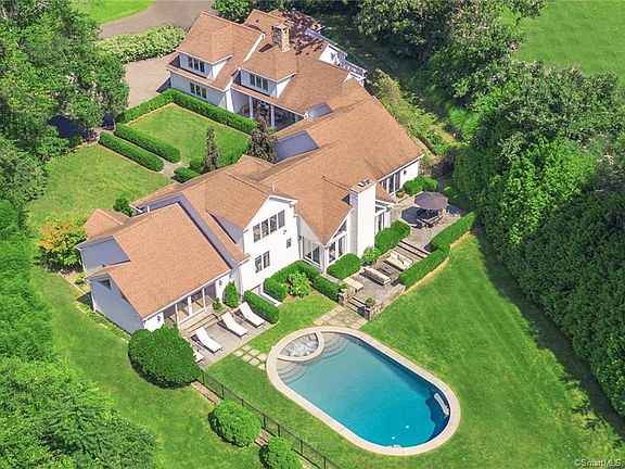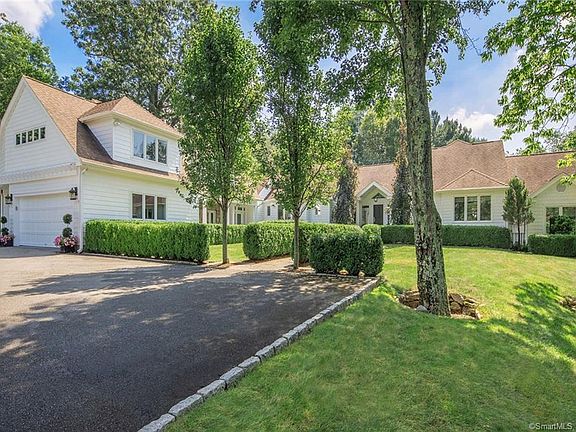 Minutes from town and train, this timeless retreat shines with fresh and modern interiors. Custom details can be found throughout the light and bright chefs kitchen, chic two-story living room and inviting family room perfect for entertaining. Unwind in style when you escape to the serene master bedroom and luminous spa bath. Outside, enjoy a quiet evening by the outdoor fireplace on the covered porch or dine al fresco under the stars on the terrace overlooking the pool and spa. Discover scenic hiking trails at nearby Earthplace nature center and breathe in the pristine and private setting. Truly a home for all seasons!