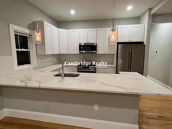 East Somerville/Sullivan Square Closest trains = East Somerville (Green Line) and Sullivan Square (Orange Line) 2 bed/2 bath (first floor, left-side) Modern eat-in-kitchen with new stainless-steel appliances Newly tiled bathrooms Refinished hardwood floors throughout New central heating and AC w/ NEST thermostat Gorgeous white-granite counters In-unit laundry (new washer/dryer machines) Spacious living room High ceilings Stunning Master bedroom with two walk-in closets Street parking with City permit