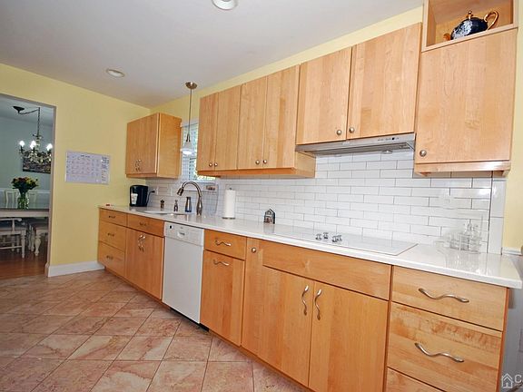 This stunning end unit boasts picturesque pond views. It features beautiful marble flooring in the kitchen and family room, while hardwood floors grace the living room, dining room, and bedroom. The well-appointed kitchen is equipped with modern appliances, including a wall oven, microwave, electric cooktop, and recessed refrigerator, all accented by stylish stone counters. Step outside onto the 20 x 22 fenced-in paver patio, where you can relax and enjoy the outdoors in privacy. This pet-friendly community offers a clubhouse, pool, tennis court, and playground. Conveniently located near Route 516 for easy NYC bus access, it's also close to Routes 9, 18, and 34, the Garden State Parkway, NJ beaches, and a plethora of dining and shopping options.