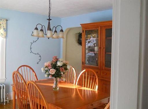 Raised Panel Oak Kitchen is one of the SPECIAL features in this 7 ROOM COLONIAL. The first floor, also has a formal Dining Room with Sliders to a Deck. Formal living room with fireplace and a heated glass enclosed sunroom plus a convenient half bath with Custom Floor to Ceiling Steel Tiles. The Second floor has 3 Bedrooms and a Spacious Full Bath plus walk up to the floored attic on the 3rd floor. Extra Special Balcony off the Master Bedroom. You will love this gorgeous tree-lined street . One of the nicest playgrounds/parks in the City is a short walk away. The Lower Level has a finished room with a dry bar for entertaining or as extra space for a play room. Much updating, including; mechanicals, architectural roof, many newer insulated windows. patially fenced yard plus concrete patio or extra parking area. All Appliances -- including washer and Dryer. Affordable and convenient to downtown and/or bus line. Easy to See!