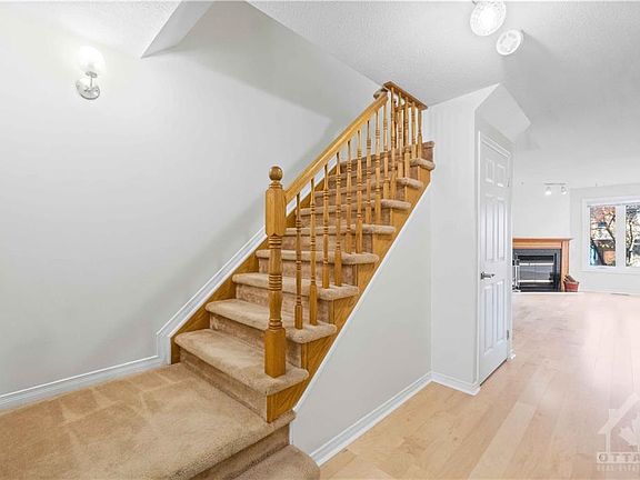 Meticulously maintained 3 beds, 3 baths townhome located on a quiet crescent in a beautiful neighbourhood of Katimavik in Kanata. Great location! Only minutes away from schools, parks, trails, trans, shopping and amenities. Main level of this bright home features a welcoming foyer, with 2-piece bath and garage inside entry. Spacious living/dining room with a cozy fireplace and a beautiful view of a private backyard with a deck. Kitchen with additional eating area and plenty of cabinet space. Upper level features a large primary bedroom with 3-piece en-suite and a large closet. Plus 2 additional good size bedrooms and a full family bath. Finished lower level with family room, office/den, and plenty of storage space. This home is perfect for first time home buyers, investors or anyone who's looking to live in a friendly neighbourhood of Katimavik. Windows and roof were replaced in the last 4 years.