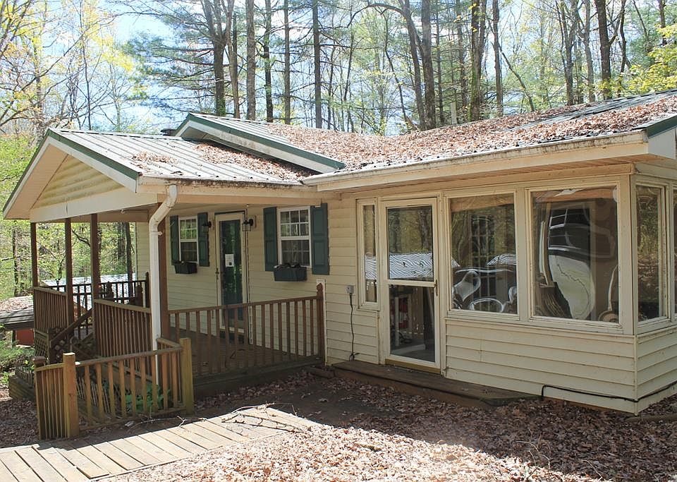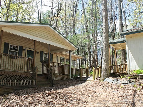 2 bedroom 2 bath cottage in gated community in mountains of North Carolina. Home features open concept with Living/Dining area. Master and 2nd bedroom have baths right outside door. Home has a Sun Porch with vaulted ceiling for relaxing and enjoying a little more privacy, covered front porch for rocking and deck for entertaining. Small workshop offers extra storage and could be used for extra sleeping space for guests. Community amenities include access to small lake. Gravel Road is wide and well maintained. Would make great vacation or rental.