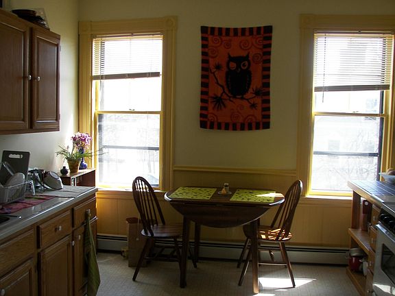 Walk to downtown from this charming, sunny, spacious one bedroom in lovely older building with heated sunroom, spacious eat-in kitchen, private entry, bath w/claw foot tub/shower, mantel, built-in hutch w/glass doors and other interesting features; extra storage space. Tenant pays for electricity. Landlord pays for heat, hot water, trash removal