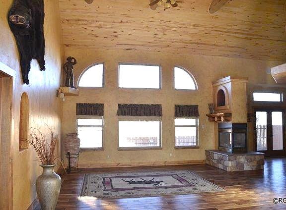 Immaculate move-in ready luxury 5 bedroom/4 bathroom stucco home on 2.32 fenced acres. 36x56 detached Shop w/ 220. 2 car oversized finished attached garage. Master suite w/ walk-in closet, walk-out patio, fireplace, master bath w/ jetted tub, walk-in shower, double sink vanity, built-in tv. Living room w/ 3 way fireplace, vaulted Aspen ceilings, hand scraped Brazilian Teak hardwood floors. Kitchen w/ breakfast bar, island, stainless steel appliances, pantry, hickory cabinets w/ under counter lighting. Theater room w/ wet bar & kitchenette. Automatic gate. Fully fenced. 2 high efficiency heat/air units. Propane line for outdoor BBQ. Fenced yard area for dogs. Rinnai tankless water heater. Amazing mountain views. Horses allowed. Built-in speakers. Security system. Storage areas. Wood chute.