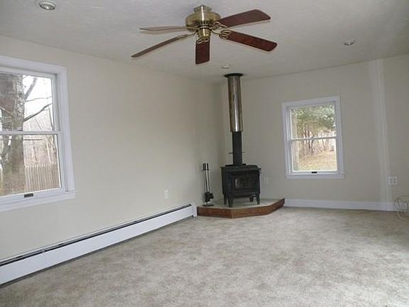 USDA APPROVED!!!!! Nicely updated, neat and clean, move right in. Start the new year with a new home. This New England Colonial Farmhouse has an updated white cabinet kitchen with walnut hardwood floors and a center island. The family room has an inviting wood stove and sliders to the PT deck which overlooks a large back yard. Beautiful Dark walnut hardwood floors throughout home. The bathroom has been renovated to include first floor laundry. The first floor includes an office or bonus room. There are 2 bedrooms upstairs, with large closet space. Home includes brand new ceiling fans and warm inviting neutral paint colors. Make the time to have a look at this well kept home. Brand new state of the art sump pump system with French drains installed in basement. Security system and window alarms are a bonus to the home.