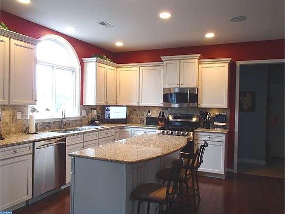 This ABSOLUTELY BEAUTIFUL STONE FRONT Home is nestled in Raven's Claw Community plus Springford schools! The attention to detail is evident throughout with upgrades galore including High Ceilings, Hardwood flooring, Crown-molding, custom millwork, custom wooden blinds, upgraded light fixtures & wiring & more(see disclosure). The Welcoming open Foyer has HW floors, double profile crown molding and it leads to all of the spacious rooms. The Gourmet Kitchen is designed for Culinary Creativity with its' Granite countertops, oversized island w/ built-in trash cans, double oven and gas range, tumbled stone back splash, upgraded stainless steel appliances, dimmable LED under cabinet lighting & recessed lighting, Upgraded cabinets w/ trim, a GE Profile microwave w/ exhaust fan. The breakfast room area is sunny and has sliding French doors to an entertaining custom Trex deck w/ fencing & gate plus wiring for outdoor speakers. The large open gathering room has a Gas Fireplace w/Traditional mantle & HDMI cable wires hidden and TV above the fireplace w/ wall mount. The Elegant Formal Dining room has a chair rail, wainscoting & crown molding. The Living room has crown molding & recessed lighting and 2 large windows. The first floor office is has multiple outlets & a door. There is a convenient powder-room & first floor laundry room and access to the 2-car garage. The Second floor has an open hallway w/double profile crown molding. The Main Bedroom Suite includes a luxurious Bathroom w/Tile walled shower, oversized corner tub, plantation shutters, wall mount & wiring for TV and in-wall volume control for in-ceiling speakers. The Main bedroom Suite has a huge walk-in closet, hidden wires for the TV, custom blinds, etc. There are ceiling fans in all of the bedrooms & home office. There are TV wall mounts for the gathering room, LR, Main bathroom & 1 additional bathroom. There are custom plantation shutters in mud room, powder-room & main-bedroom bathroom. The basement has high 9 ft. ceilings and is roughed-plumbed for a full bathroom and has Bilco-doors & it is ready for you to design your own man cave. You are convenient to all major arteries, Rt.422, I-76 and Ridge Pike & 20 minutes to King of Prussia. You can walk to the Restaurant/Grille and go Golfing in your own backyard!! Springford Schools too!!