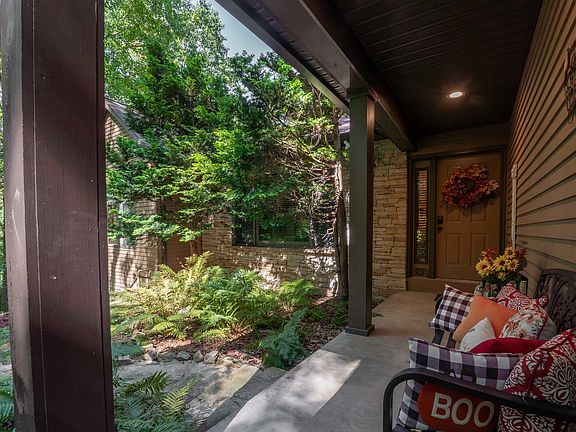 Tucked among the mature trees of Hickory Ridge, this 2.61 acre property offers exceptional privacy and desirable one-level living. Inside you will find an inviting entryway with beautiful hardwood floors throughout. The updated kitchen with new refrigerator features a breakfast nook and eat-in area. The formal living area boasts beamed cathedral ceilings and a cozy gas fireplace that wraps around into the gathering room. The built-in custom cabinetry adds both beauty and functionality. The large back doors open to a generous back deck-perfect for entertaining or simply relaxing while overlooking the large fenced lot. The primary suite with updated bath provides access to the deck and peaceful acreage. Meticulously maintained with numerous upgrades, this home blends comfort, style, and convenience in a serene setting.