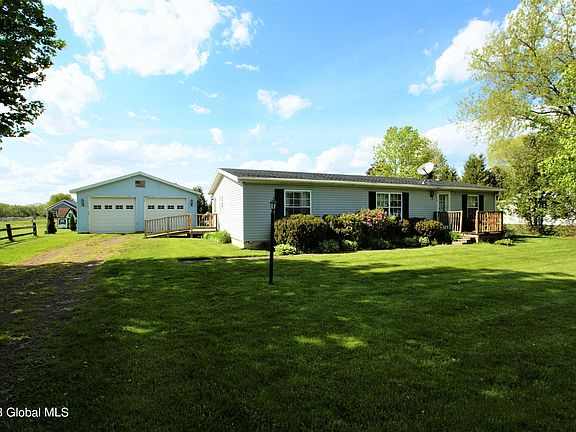 Village of Granville estate sale 1996 manufactured double wide 3 bedroom home on quiet street with detached 24x30 two car garage. Open living room to dining area to good size kitchen all with vaulted ceilings, primary bedroom with walkin closet full bath including jet tub, two bedrooms separated by second full bath, second entry with laundry and utilities. Home is on a pored concreate foundation with crawl space, large underground propane tank, power to garage, newer roofing singles, home needs tlc on inside including flooring and paint etc.