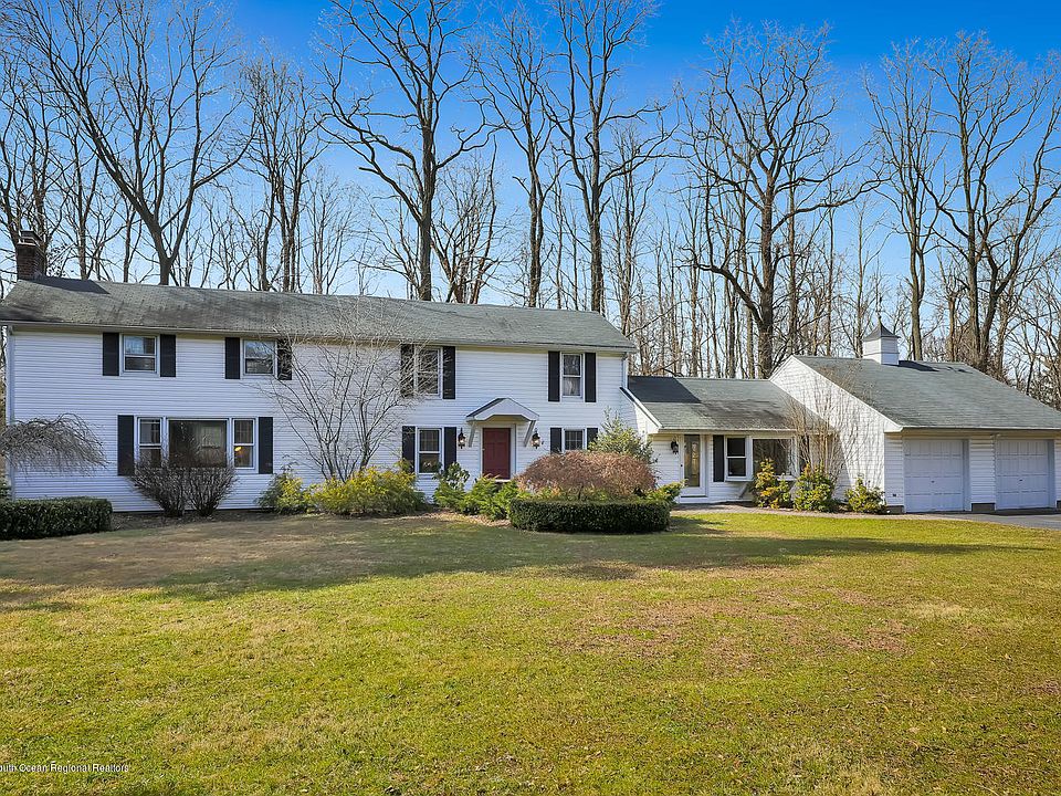 Charming 3-4 bedroom, 2 full bath Classic Colonial on beautiful 2 acre parklike property in one of the loveliest neighborhoods in northern Tinton Falls, wedged between Shrewsbury & Lincroft. This home oozes charm and modernity in all the right places! What started out as a historic colonial has been graciously transformed and modernized into a sprawling home perfect for everyday living and stylish entertaining. Highlights: Dramatic serpentine driveway with paver apron and prof landscaping; formal entry 'room;' formal dining room; extra large living room & master bedroom addition; high-end custom kitchen; airy family room addition with (2018) custom built-ins (for all your gear;) custom, multi-level paver patio; upstairs laundry room; HVAC System installed (2018.)