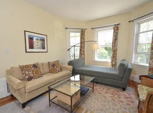 Delightful 2nd Floor Condo! FABULOUS location! 3 minutes to commuter rail. 20 minutes to Back Bay or South Station. Adjacent to lively Rossi Sq with its shops, restaurants, Farmers Market and buses to Forest Hills T. $3000 credit back at closing for exterior painting is offered by owner. A welcoming foyer flows to sun-filled living room. Formal dining room features built-in china cabinet. Contemporary eat-in kitchen with dishwasher, gas stove and glorious vintage pantry with space for all your gourmet cookbooks. In-unit stacked washer and dryer in second pantry off kitchen. Two large bedrooms with ample closet space. New bathroom renovated (2013). Extra features include inset lighting on dimmers, newer windows, and wood floors throughout including kitchen. Outdoor space includes private front and side porches. Plus shared yard and gardens. Designated basement storage area, new hot water heater (2012). Fallon Field is across the street! YOU CAN NOT BEAT THIS LOCATION!! View the commuter rail Station & Roslindale Village from your porch!