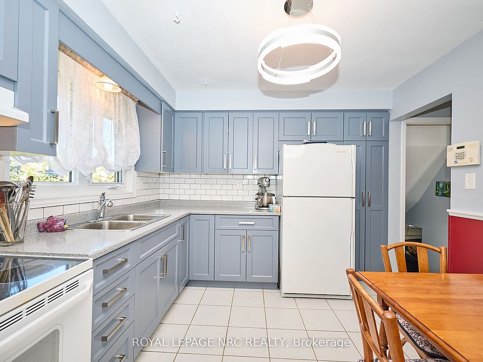 Welcome to this pristine 4-level backsplit + In-Law Potential located in the desirable North End of St. Catharines. The front covered porch is the perfect spot to enjoy your morning tea or relax during an afternoon thunderstorm. Inside, you'll find a bright and open main floor featuring a spacious living & dining area that flows seamlessly into the updated kitchen complete with custom cabinetry, a pantry, and subway tile backsplash. This home has been lovingly maintained, offering newer windows, roof, and kitchen, along with beautifully preserved original hardwood flooring that adds warmth and character throughout. The upper level hosts 3 bedrooms and 4pc bath, including a primary suite with a double-length closet. The lower level offers a large family room with a woodburning fireplace w/beautiful reclaimed brick mantle, ample space for a potential fourth bedroom or home office, a 3pc bathroom, and a separate entrance with a walkout to the backyard-providing excellent in-law suite potential. The basement level extends the living area with a recreation or den space, a utility/laundry room, and additional storage. Outside, the fully fenced backyard is framed by mature perennial gardens and lush greenery, creating a private oasis when in full bloom. The driveway easily accommodates up to six cars, offering plenty of parking for family and guests. Situated close to parks, schools, shopping, amenities, the QEW, and public transportation, this home truly combines comfort, functionality, and location in one beautiful package. Roof 2022, Kitchen 2023, Windows 2002.