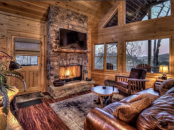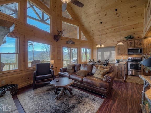 Year Round, Long Range Mountain Views saturate this cabin's Great Room, Kitchen, Loft Bedroom, Hot Tub Area & Rec/Bonus Room! Extremely popular Cherry Lake Cabin comes fully furnished & is already established as a successful rental with one of the best rental companies in North GA (grossing 45k ytd)! All you have to do is keep the rentals booked! MBR & MBA on main level (big enough for a king size bed), rough sawn kitchen cabinets with new appliances, prow front with massive windows to let the light in!, loft bedroom, full finished terrace level complete with bonus/rec room, large bedroom & bath. Hot tub already installed! Meticulous exterior maintenance, Built in 2018, Easy Access within the community!