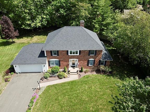 NEW ROOF installed in May of 2019 on this well maintained and updated brick front colonial on the end of the cul-de-sac in a great neighborhood near Robinson State Park. Kitchen was updated two years ago with new cabinets, granite countertops, and stainless steel appliances. First floor half bath was remodeled two years ago including a new cherry vanity, granite countertops, and tile. The other baths were also remodeled including a marble floor in the master bath, walk in glass shower, marble counters, and a walk in closet with a custom organizer. New hardwood flooring in the walk-in closet, spare room, and formal living room. Finished basement being used as an exercise room/rec room and extra bedroom. Plenty of storage and lots of closets throughout. First floor laundry/mud room. Two car garage with attic and a blended storage shed built on the back of the house. Huge deck with access from the kitchen and family room. The back yard is about 3/4 fenced in.