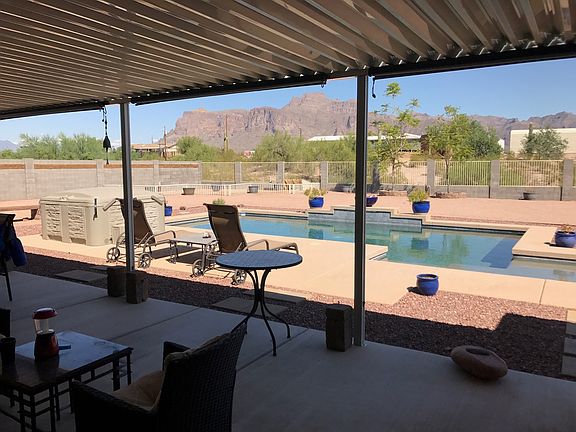 Wow! Look at that awesome superstition mountain view. This property is a must see. Open and spacious with many windows. Patio and pool. Living room, Family room and bonus room. Kitchen with skylight, pantry and dining room. laundry in The garage. Master bedroom is split with master bathroom that has dual sinks and a large tile and glass shower. 3car garage double doors in front and single garage door on the side, plenty of room for your storage needs. 4 car carport. 16x20 workshop plus 16x20 a/c studio. All this on just over an acre of land. You are sure to see some amazing arizona sunsets.(zbl(11) - 01503224330)