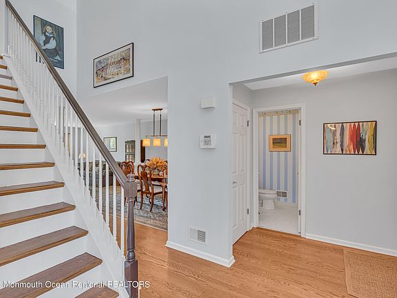 Just 1.5 miles from Spring Lake's sand & surf, you'll be captivated by this spacious 3 BR home flooded with natural light. Its outstanding floor plan is complemented by maintenance free living. The 2 story foyer leads to the formal DR & LR. The Eat-In-Kitchen boasts granite countertops & stainless steel appliances leading to the Family Room & enclosed rear yard paved patio. Upstairs, you'll discover an Owner's Suite with its volume ceiling and private balcony, as well as, 2 additional well appointed BRs. The Allaire Manor community has a tennis/pickleball court and is nearby outstanding restaurants, golf courses, fishing, boutique shopping and nightlife! This is the Jersey Shore lifestyle you've been craving and now is the time to make it your own!