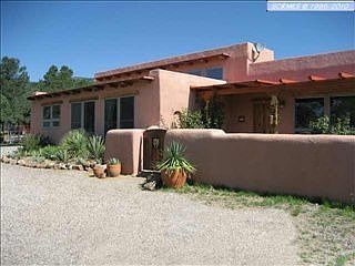 PEACEFUL & PRIVATE SOUTHWESTERN DREAM PROPERTY! This passive solar, double-brick adobe home is nestled on 20+ wooded acres in the tall pines. Features include many quality upgrades, a guest house, horse facilities, city water and panoramic mountain views! New detached oversized 2-car garage with a 12 x 12 workshop, RV hook-up w/ separate electric, and fenced. Very quiet & secluded yet convenient, just minutes to town. Additional 5.5 acres available, separately deeded & attached to t