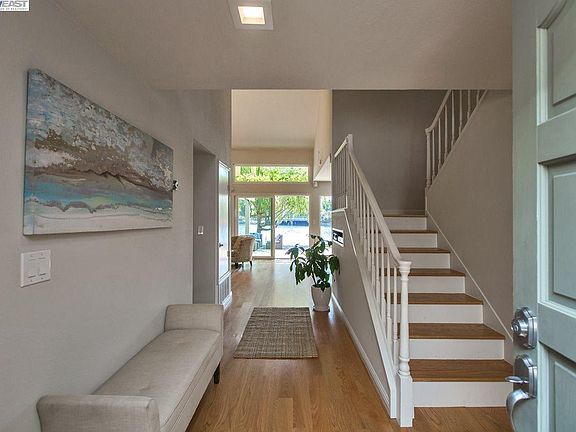 Enjoy delightful days with sunshine and tranquil water at this waterside home located next to the lagoon at the end of a quiet cul-de-sac in Bay Farm. Built in 1980 with five spacious bedrooms, three full bathrooms, a large backyard by the water, an an attached two-car garage with plenty of storage, this home is an amazing place to live. The bottom floor is hardwood throughout and consists of a sunny living room with high ceilings and a built-in entertainment system, a large updated kitchen with a breakfast nook opening up to an inviting family room. The master bedroom upstairs has a private balcony, an en-suite bath with a spa-like soaking tub, and two large closets. You will enjoy easy access to I-880, ferry and direct bus to the city, and to various shuttles. The community also offers top schools, and a shopping centre with grocery store, restaurants and a library only minutes away by foot.