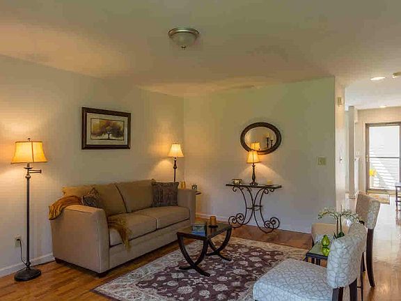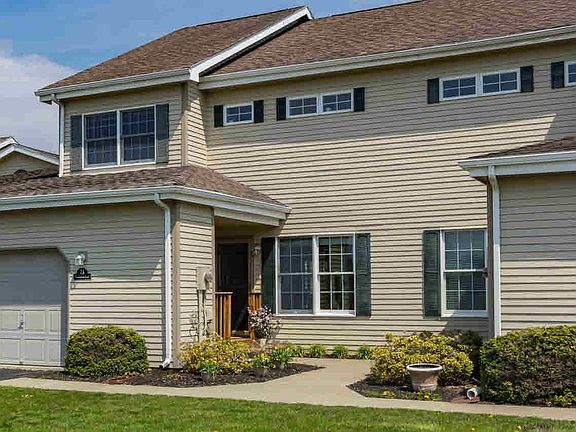 Carefree Living at The Gardens at Rhinebeck. Peaceful setting with very private rear deck that backs up to conservation land this freshly painted condo with hardwood floors on first level is bright and cheery. Nearly new appliances in a kitchen with cozy eat in area and plenty of counter space. Wood burning fireplace in living room and a private deck off of dining room are inviting and great for entertaining. Master bedroom has private balcony and master bath with soaking tub and separate shower. An open and cheery loft makes a great home office or den. There is a guest room and second full bath on second floor. Enjoy the large modern clubhouse, the tennis courts and a glistening pool. No need to join a gym there is a full gym at the clubhouse. Just minutes to all Rhinebeck Village has to offer. Come take a look you will not be disappointed.