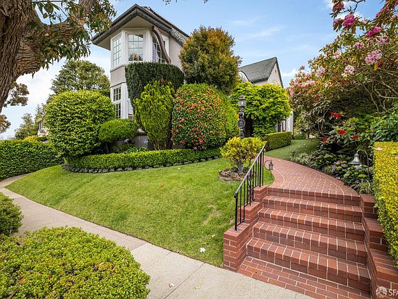 Magnificent English Tudor Revival home nestled on an extraordinary oversized lot, close to West Portal Village! Inviting garden entrance w/lush lawn, boxwood hedges, blooming wisteria & brick walkway leads to a spacious veranda w/stunning original front door & into a classic foyer w/center hall, open-banister staircase, leaded-glass windows & coat closet. Spectacular sunken formal living rm w/high ceiling & enormous bay window boasts a fireplace w/handsome mantel, built-in bookshelves, recessed lighting & hardwood floors. Fabulous banquet-size formal dining rm w/coved ceiling, arched fireplace, beveled-glass pocket door & French doors that open to the garden! Delightful kitchen w/fun chef's station showcases all stainless-steel appliances, incl a Dacor six-burner gas range w/Viking hood, built-in wok, double oven w/pot-filler, granite counters, wood cabinets, glass-block window & butler's pantry w/wet-bar. Amazing six-sided, light-filled breakfast rm w/doors that open to the backyard. 3BR/2BA up incl the grand master suite w/Pacific Ocean views. Terrific family rm w/media cabinet, laundry rm. Spectacular, award-winning park-like landscaped backyard w/flagstone patios, mature manicured hedges, plants & trees, walking paths, putting greens & separate cottage w/bath & home office!