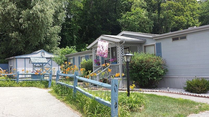 Beautiful and Spacious! You'll love this 1900+ sq.ft home that has 3 bedrooms and 2 full baths. Master w/ on-suite and walk in closets. Large dining room, living room, family room w/ fireplace and built in custom bookshelves, Mudroom with plenty of storage and separate washer/dryer area, screened in porch w/skylights. Laminate flooring through out with plush carpeting in all 3 bedrooms. Brand new central-air system and Furnace. Private corner lot with split rail fence around the property. Plenty of room to BBQ and entertain. Lot rent includes water, sewer, garbage pick-up and snow removal on roadways. NO DOGS allowed. Please email/call for more information or to set an appointment for showing.