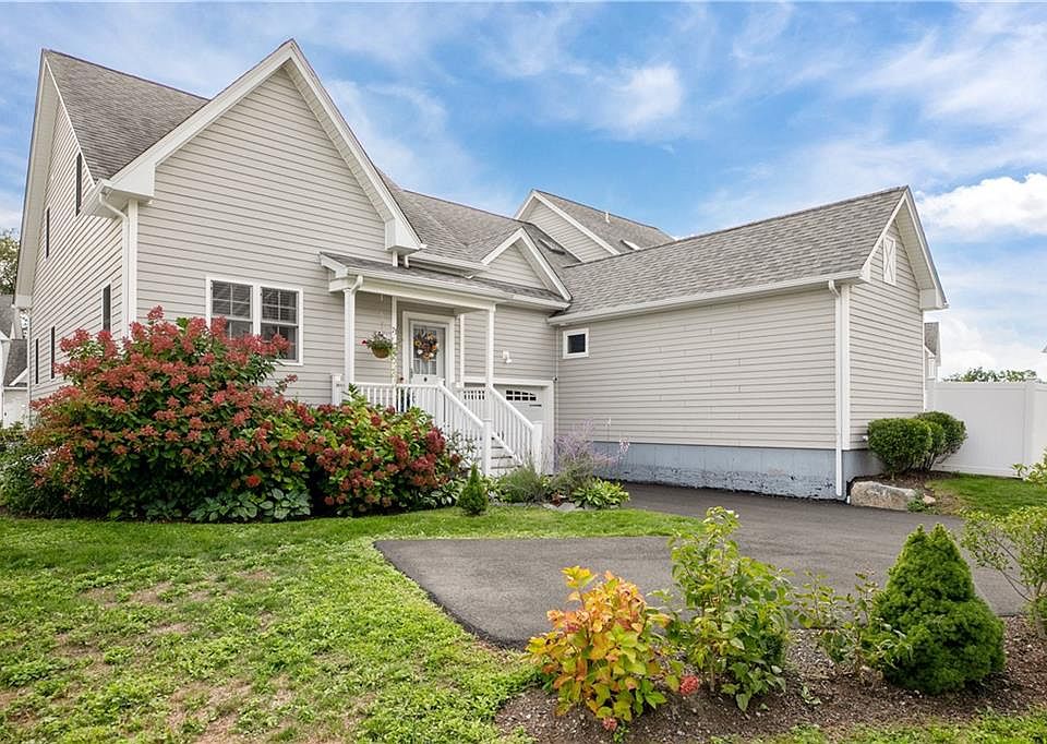 Lovely, impeccably maintained two bed, two bath condominium filled with sunlight designed for comfort and convenience. Attention to detail in the care is evident throughout the home. Hardwood floors throughout, three vehicle parking, a full basement with built-in shelving is accessible from inside and outside. The first floor bedroom with large closet is steps away from a shower bath and the second floor bedroom boasts large walk in closet. The second floor bath has a tub and shower and there is an office or guest room with handsome built-in shelves. A pretty porch ideal for morning coffee, afternoon sippin' or a cookout leads to the private, enclosed garden and is covered by a remote canopy. Located near Portsmouth's town amenities, fine dining, eateries and, remember to bring your bathing suit and take a dip into the Sakonnet River.