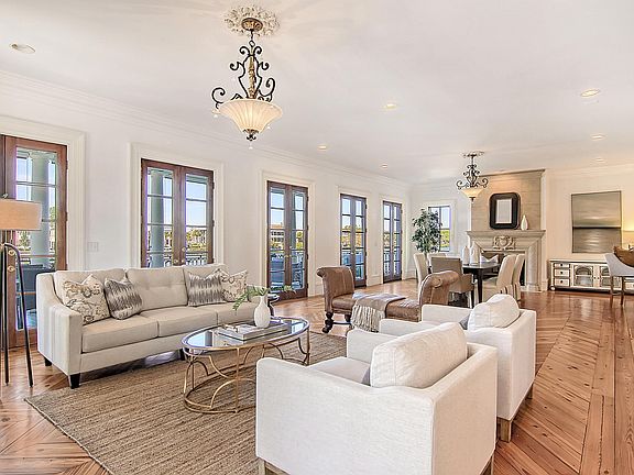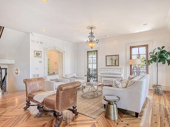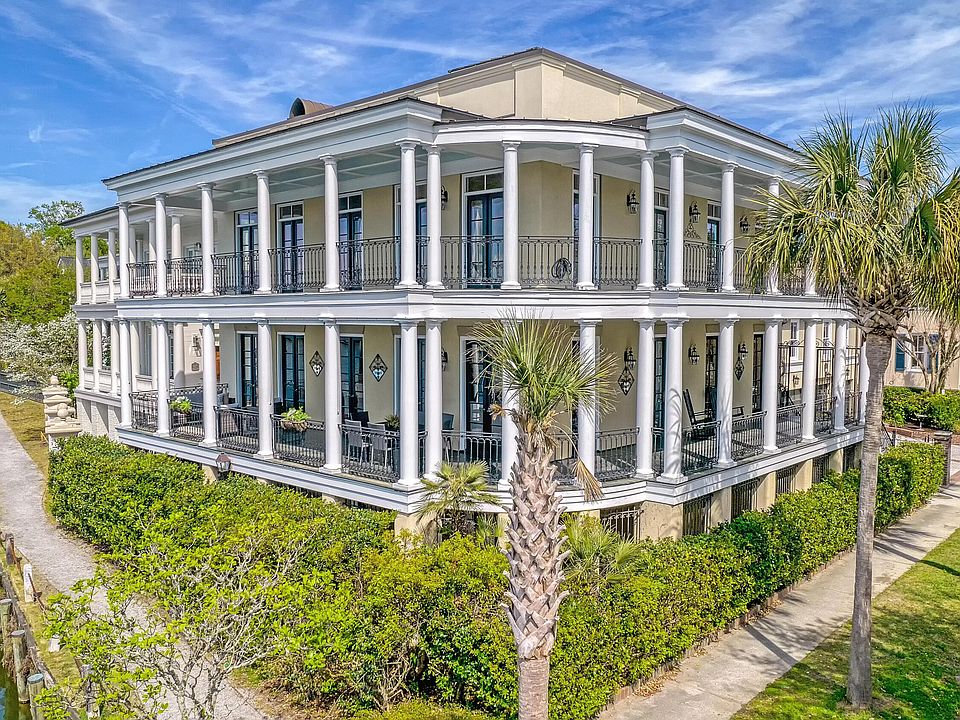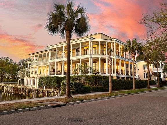 Back on the market through no fault of the seller. Arguably the most spectacular view in I'on, perfectly positioned on the corner of Eastlake. A fabulous Neal VanDalen designed home that encompasses stately architecture & attention to detail that you can only dream of. Step into the open great room & take in the views from the 5 french doors that open onto the wrap around piazza. You'll immediately notice the chevron design of the refinished heart pine floors, soaring ceilings & rich moldings throughout. The home boasts 2 fireplaces, a unique Italian inspired kitchen & includes features like a molded concrete stove surround & metal vent hood, 6 burner gas Wolf stove,a 48" SubZero fridge, custom wood cabinets, cast iron sink, wine cooler, wine storage, crystal chandeliers & marble counters. The main level is perfect for living & entertaining alike. The parlor on this level is a lovely, separate space to relax with marble floors, dentil crown & archways. The second level has 3 bedrooms, each with piazza access, french doors & floor to ceiling windows and their own ensuite bathrooms. Generous closet space too. The primary bedroom has a tray ceiling with it's views makes you feel inspired on a daily basis! And the luxurious ensuite... a new stand alone tub, crystal chandelier, another gas fireplace with concrete surround & huge shower complete the space. On the lower level/ground level you'll find 2 more bedrooms and a large living space that would be perfect for in-laws if needed. One bedroom has 2 french doors with access to this level's covered & private porch, space for a sitting room & a full bath. This bath has been updated with shiplap & plantation shutters. The family room downstairs also has porch access which takes you right out to the walking path around the lake. Speaking of porches, this home has a total of 3 levels & over 3,000 sq/ft of wrap around piazzas and a rooftop porch that rivals some of the best homes in historic Charleston. Unique to I'On, this home includes a 3 car carriage house (total off street parking for 5-6) with finished space above, complete with a full bath & kitchenette. It's perfect for your home office, college student or a long term renter. This space is approximately 665 sq/ft of the total square footage of the home. 73 Sowell Street has undergone extensive exterior renovations resulting in a practically new home. This includes a new metal roof, a new liquid roof membrane on the rooftop patio, new cupola & removal of the traditional stucco. This was replaced with a Parex NuTech cement board system that looks like stucco but is not. As a result the exterior of the main home has been repainted. More info on this when requested.