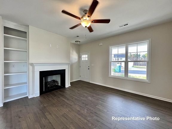 Step inside this beautiful open ranch floor plan with 3 bedrooms and 2 baths! Kitchen features granite countertops, tile backsplash, stainless steel appliances & island with seating. Gorgeous fireplace & built-ins bookshelves in the large living room. Main Suite with tray ceiling, fan, walk in closet & 5ft shower. Entertain on the private patio/deck overlooking the spacious backyard. Photos of similar homes and cut sheets are for representation only and may include options, upgrades or elevations not included in this home.