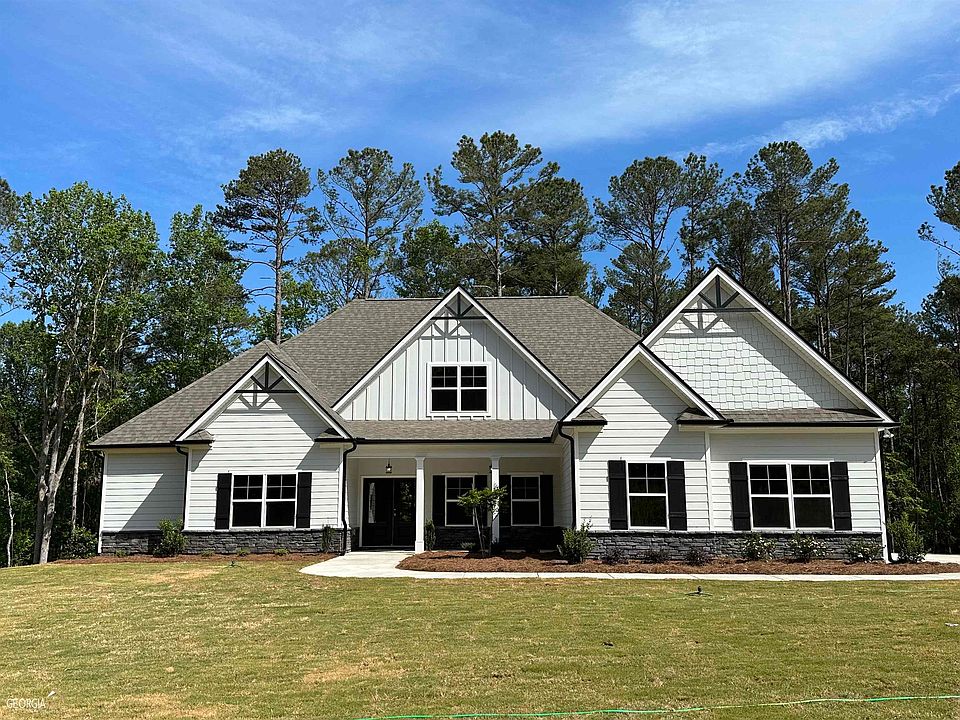 Greywell B - 5 Bedrooms, 4 Baths Jeff Lindsey Communities brings you the Greywell Floor Plan - Walking into the Foyer, the Dining Room is on the left and features chair railing and coffered ceiling. Beyond the stairs you enter into the spacious, open concept family room that looks into the kitchen, breakfast area, and keeping room. The Family Room has a row of windows overlooking the covered back patio and showcases a beautiful stone fireplace. The Kitchen features stainless steel appliances, and two large islands with upgraded countertops, and hidden walk-in pantry. The Huge Master Bedroom has tray ceilings and a sitting room, with French doors leading to the covered patio, and is connected to the ensuite with double vanities, garden tub, separate shower, and walk-in closet. Also on the main level is a secondary bedroom and a full bath. Large mudroom off of the garage and separate laundry area. Upstairs there is a small study area, two more secondary bedrooms with a Jack and Jill style bathroom. Back into the small study area and up three stairs, is the fifth bedroom and ensuite with walk in closet. One acre lot with wooded backyard.