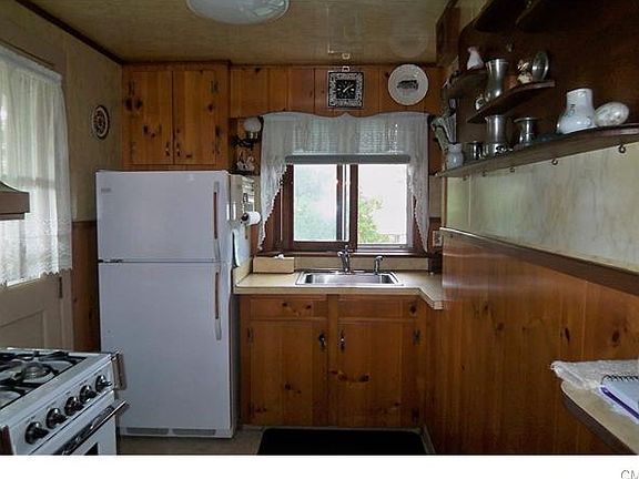 Adorable, cozy Ranch on 1 acre with mature plantings, 1 car detached garage/workshop and storage sheds. Interior features kitchen, dining room, living room, 2 bedrooms, 1 full bath, 3 season sunroom and full basement. Freshly painted exterior 2016. Home is dated but has been lovingly maintained by original owner. Oil, hot air heat, septic system with 1000 gal tank and private water system. First time on market in 71 years. Don't miss this opportunity to become a homeowner. It is a great condo alternative!