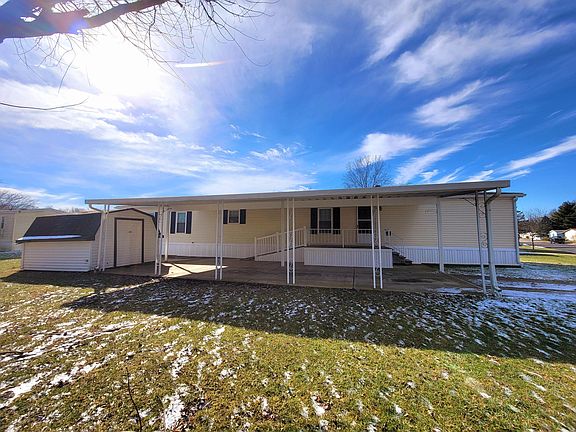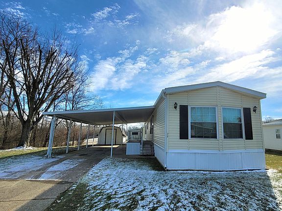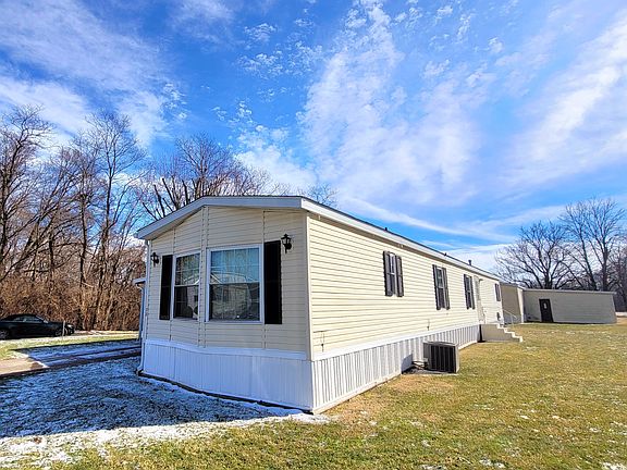 marks: Welcome to one of Clark County, Ohio's most cared for mobile home communities! Shrine Road Mobile Home Park is perfectly located to easy access to highway, shopping and more. Situated at the end of Sunset's cul-de-sac, this 1990 Danville model has been well maintained and is ready to move into. Extra long carport concrete patio for a covered parking or gathering. There is an over sized shed for stow away items. The ramp & deck leads the way to the front entry. Plenty of room for lounging. Inside you will preview an open floor plan with split bedrooms; each with their own full bath. The living room blends well into the full sized eat-in kitchen, you have ample entertaining room. Loads of cabinetry and counter space. All appliances to convey. The utility room has access to a back exit to the outside. Washer & dryer included.The main en-suite is large and has double closets. The private full bath is complete with walk-in shower. The 2nd bedroom has a full bath. Outdoors enjoy being at the end of the road with open fields adjacent. Extra parking pad available for use. IMPROVEMENTS: (per seller)Water heater 2014. This is a 55+ year old community and all potential buyers must be pre-approved by park management. $35.00 application fee required. No dogs are permitted. Owners are responsible for own lawncare & snow removal. See park rules and regulations attached. Lot lease is $300 and water/sewer paid to park is additional $35. monthly=Total $335.00 monthly
