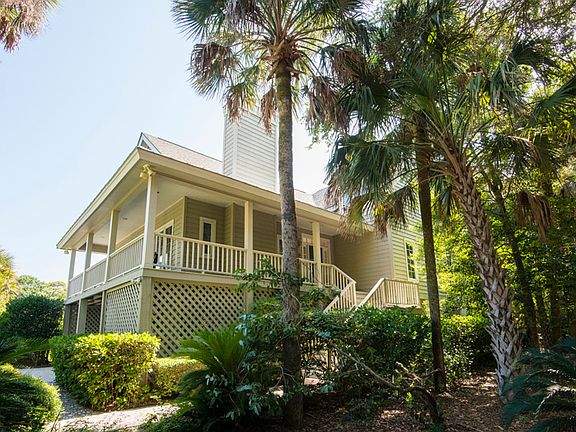 Conveniently located above Canvasback Pond behind the Island's second security gate, this home enjoys sparkling water views out to the 13th fairway of Turtle Point golf course and is within walking distance or a short bike ride to Kiawah Island's 10-mile beach. Designed for families that love to spend time near the beach year round, the layout is perfect for both small and large gatherings. Large bedrooms and flexible living areas offer plenty of open space to spread out and play, and lots of cozy nooks to read, relax, and rejuvenate. The long covered front porch opens in to the two-story foyer with tile flooring and sight lines into the main living areas with rich hardwood floors and crown molding. The great room is anchored by a brick surround fireplace with custom built-ins and features vaulted ceilings, recessed lighting, oversized picture windows with plantation shutters, and direct access outside to the back deck. A spacious sunroom serves as the heart of the home. Complete with warm terra cotta flooring and indigenous cypress plank walls and vaulted ceilings, the room is surrounded by floor-to-ceiling windows and enjoys spectacular views of the pond, Kiawah's birds and wildlife, and the golf course. Fully equipped, the spacious kitchen features ample cabinetry and storage space, tile perimeter countertops, a large center island, and Jenn-Air appliances. The first floor master suite features a large walk-in closet, dual vanities, and custom tile work. Two additional guest bedrooms--one on the first floor and one on the second floor--have private bathrooms. Upstairs, the second master suite offers two walk-in closets, separate dressing room, and private en suite with dual vanities, large shower, and garden tub. Offered furnished, additional features of this home include a formal dining room, spacious den, laundry room with utility sink, and a four-car garage with storage.